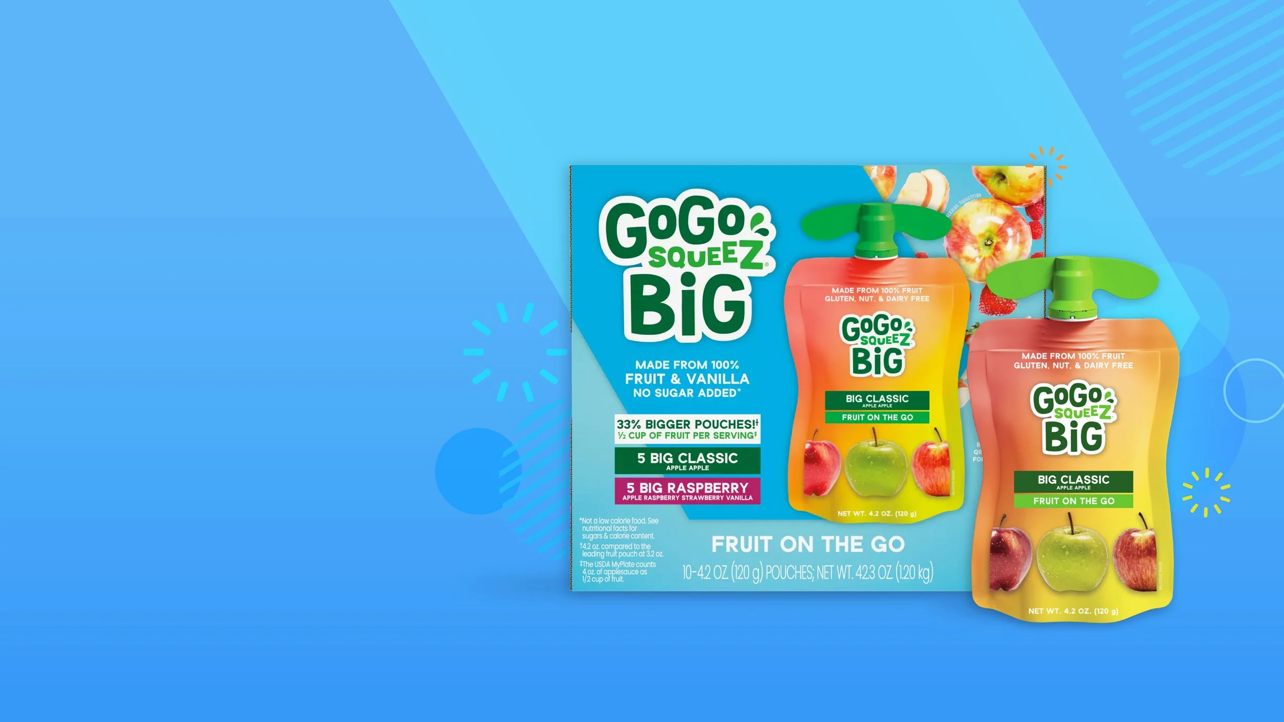 At the same time, parents and caregivers really want to keep their big kid’s eating habits on [a reasonably healthy] track– especially with snacking, and especially as these big kid appetites grow bigger and bigger. As the appetites become harder to keep up with.so they‘re seeking something to fill GoGo’s spot in the pantry. Kids and parents alike need easy, mess-free, on-the-go snack options, which is sort of GoGo squeeZ’s original niche. Overall, the opportunity to win over ‘older snackers’ was clearly a big one; the visual expressions just hadn’t hit the mark...yet.