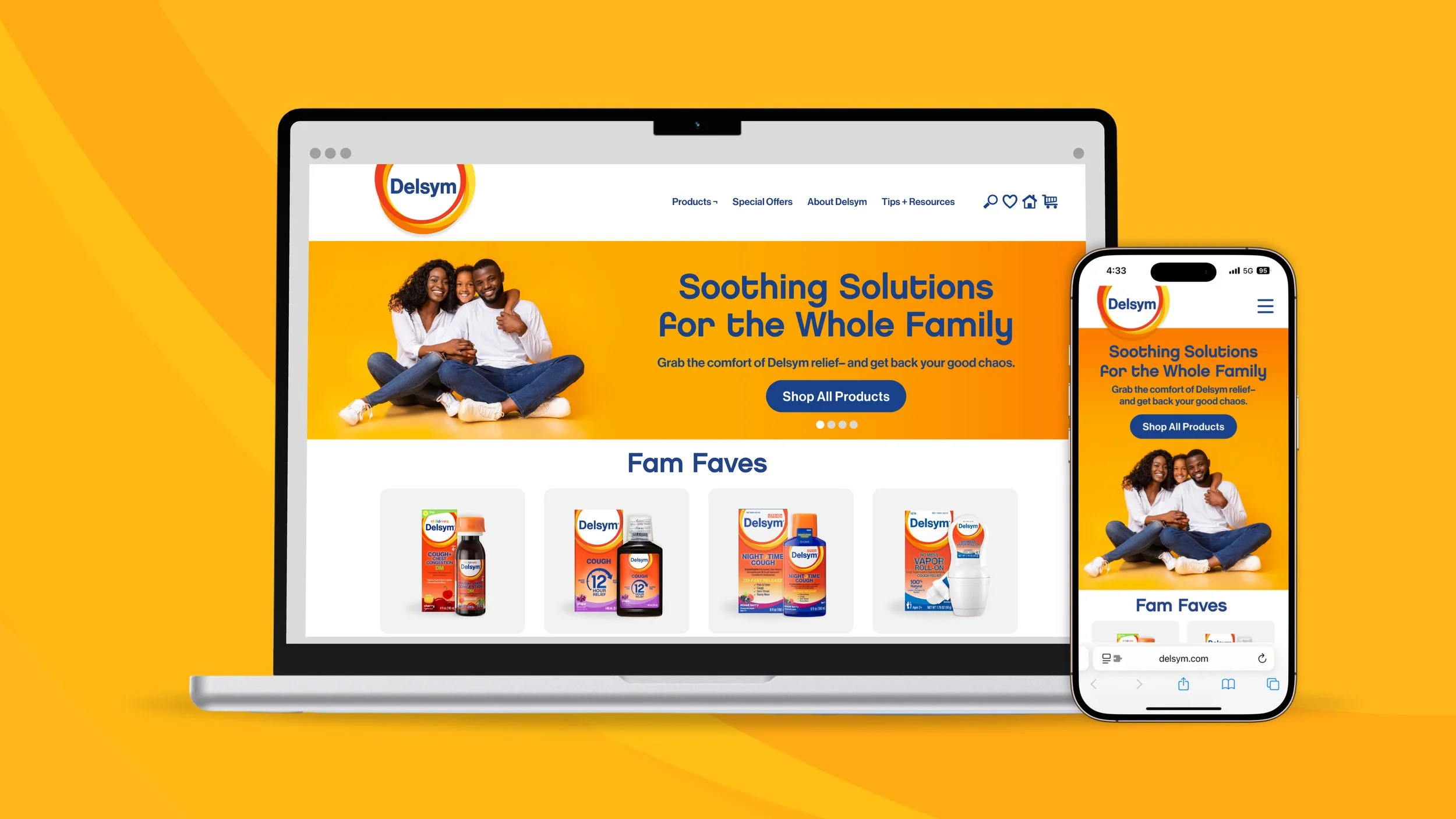First, we defined our target consumer group and established an ownable, purpose-led demand space– ‘Family Comfort’. Next, we translated our ‘Family Comfort’ positioning into a well-rounded and strategic brand identity. Then, with a firm brand foundation in place, we moved into developing a futureproofed packaging design system and brand world/visual identity). We designed Delsym’s new brand elements intentionally, ensuring the visuals expressions worked harmoniously with the new brand footprint. We even found a way to honor Delsym’s key brand tenets (efficacy, safety, and loving care) within the codes of our logo.
